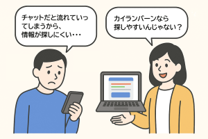 カイランバーンは、LINEやメールと違って 情報が整理されて見やすい仕組みを持っています。