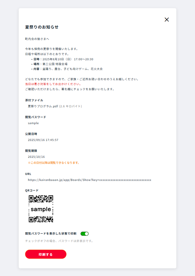 以下のステップで、回覧板をカンタンに印刷できます。